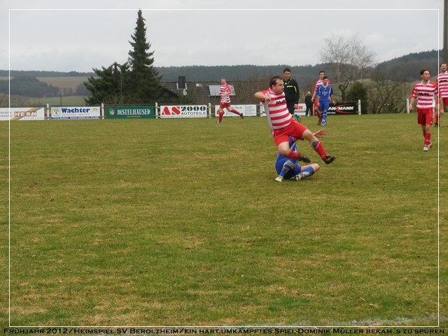 Nach dem Seitenwechsel wollte jede Mannschaft das so wichtige Führungstor erzielen, was allerdings keinem Team gelingen sollte. Stattdessen stellte der Schiedsrichter nach einem Foulspiel in der 60.Spielminute einen Spieler von Berolzheim mit Gelb-Rot vom Platz. Von nun an spielte nur noch der TSV auf das Tor der Gäste. Doch die Abwehr der Gastmannschaft stand an diesem Nachmittag sehr gut gestaffelt und die Götzinger Mannschaft tat sich schwer. Der agile Stürmer des SVB machte schon früh das Feld eng und war bei Kontern stets gefährlich. Als schließlich schon alle mit einer Nullnummer rechneten, war es der eingewechselte Stefan Link, der unsere Rot-Weißen in einen Jubelrausch versetzte. In der 88.Spielminute musste er nur noch aus kurzer Distanz einschieben. Jubel auf der einen Seite, Enttäuschung auf der anderen! In der Nachspielzeit bekam Spielertrainer Bernhardt nach wiederholtem Foulspiel ebenfalls die „Ampelkarte“ und musste somit vorzeitig das Spielfeld verlassen.